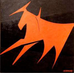 toros rojo 70cm×70cm oil on canvas Contained sand Of Majorca 2005 Made in Majorca |